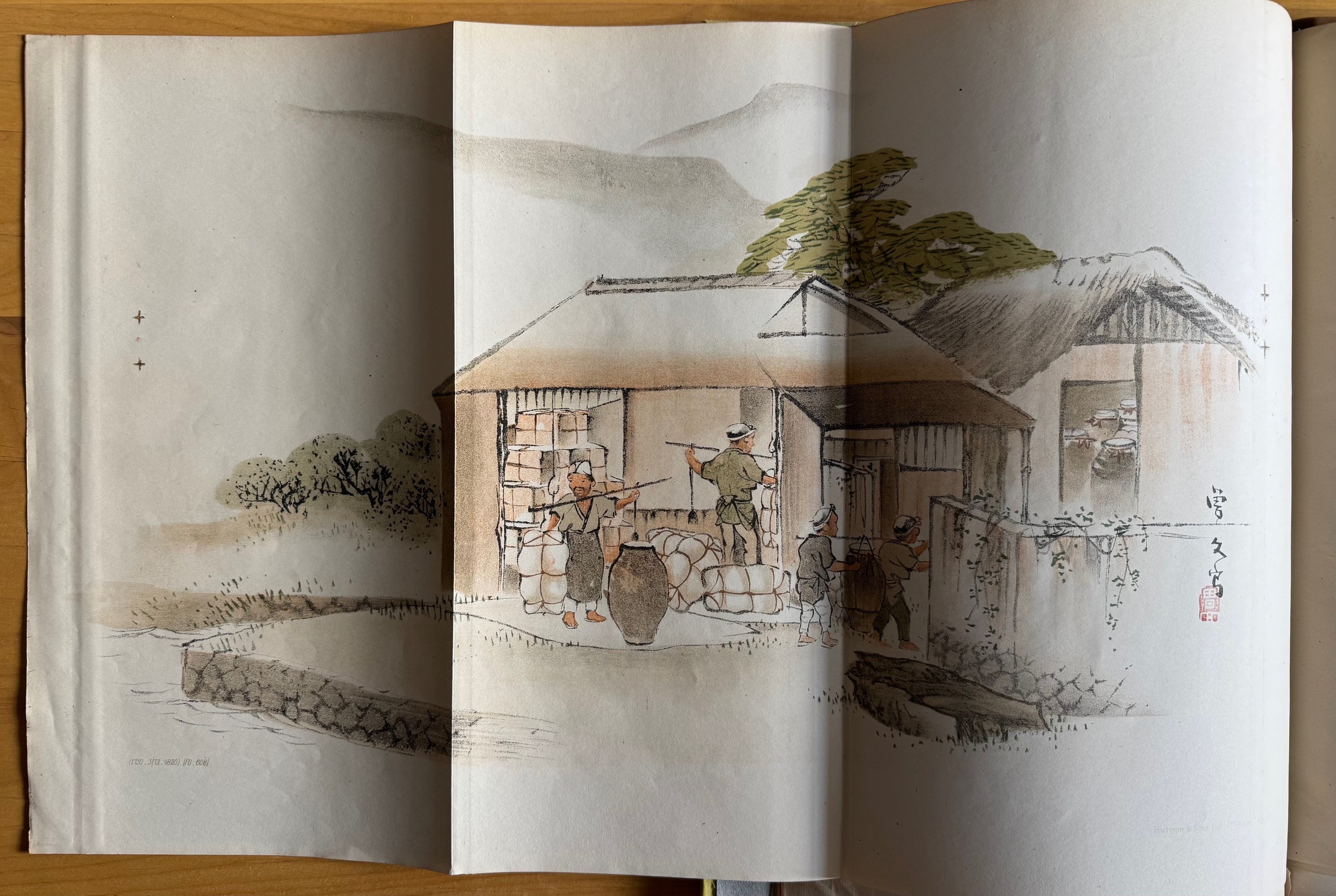 The nine beautiful plates measure 12 x 19.5 inches and represent various stages in the cultivation of tea.