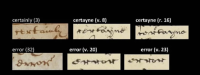 News of the discovery was announced in The Papers of the Bibliographical Society of America in 2024. Leading paleographers and Shakespearean scholars worldwide agree that there is a pronounced similarity between the “h-a” ligatures in the Vincent manuscript and those written by Shakespeare. (See photos for comparison of the words "that," "what," and "hands" in Sir Thomas More and "that," "hang," and "shalt" in the Vincent manuscript. Many words such as "certayne" and "error," also illustrated with the Sir Thomas More exemplar on the left and the Vincent manuscript exemplars on the right, are extremely similar in the two hands.)
