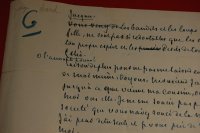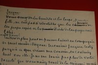 Although the page is undated, Sand presumably wrote Comme il vous plaira in 1855, leading up to its premiere in April 1856. The handwriting of this page seems consistent with Sand’s handwriting from 1855 onward. Prior to 1855, Sand’s handwriting slanted forward; after 1855, it is noticeably more upright, as seen in this example. Some attribute this change to the trauma caused by the tragic death of her granddaughter, Jeanne, known as Nini. Nini’s parents, Solange Dudevant-Sand and sculptor Auguste Clésinger, had been engaged in a vicious divorce and custody battle when, in 1854, Clésinger kidnapped Nini and kept her for a month. Sand and her daughter, Solange, had no idea of the girl’s whereabouts. When Clésinger finally reemerged, the court granted Sand, with whom Nini already lived for much of the year, full custody. Supposedly, Clésinger showed up one day for an unexpected visit, precipitously taking Nini, who was not adequately dressed for the winter cold, for a walk. Although Clésinger returned her to Sand, Nini became ill and died three weeks later.