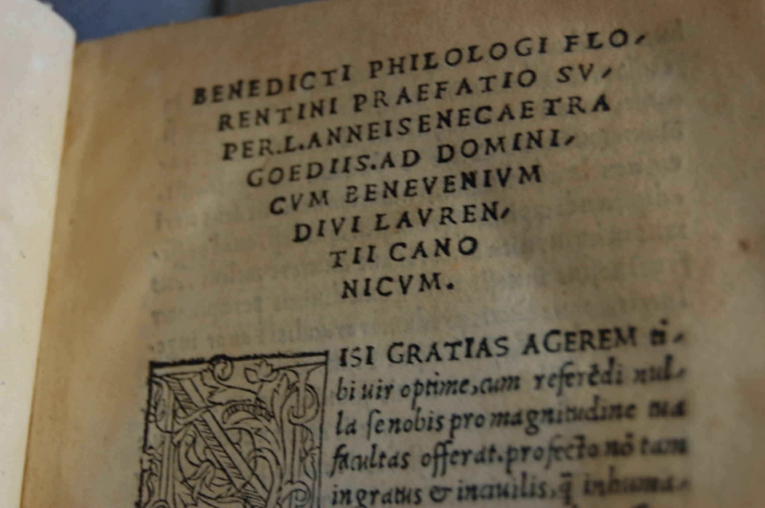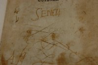 This provenance remains unconfirmed, however. The signature reads “Agapoti” rather than “Agapito,” and the use of the surname Borgia may not accord with Geraldini’s usual practices. Other candidates exist—the librarian who compiled the Indice Vecchio, a 1480s catalogue of the Duke of Urbino’s famous library, was also named Agapito, for example. In Greek, “agapoti” means “dear”—perhaps the words are a fond inscription rather than a signature. And what of the “Borgia?” A direct Borgia/Seneca connection exists—from c. 1488-1491, Cesare Borgia’s private tutor was a man named Paolo Pompilio, a member of the Roman Academy who published a book on Seneca in 1490. That book, Vita Senecae, was dedicated to Giovanni Lopez, Rodrigo Borgia’s secretary. It seems unlikely that Seneca would not have featured in young Cesare’s education.