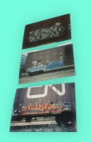 The majority of graffiti documented here is by various artists. Notably, several photographs feature handwritten autographs, signatures, or crew tags on the verso, likely penned by the graffiti writers responsible for the art shown—enhancing provenance and allowing connections to regional or national graffiti networks of the era.