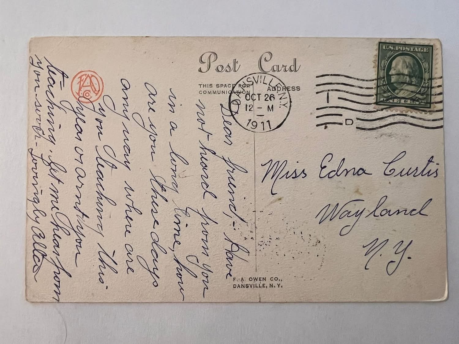 Manufacturer: F A Owen’s (855 AMC Postcard)