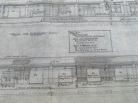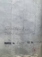 Good to very good overall. Vellum sheets show typical handling creases, edge wear, and light soiling consistent with use. Drafting lines and lettering remain strong and legible.
