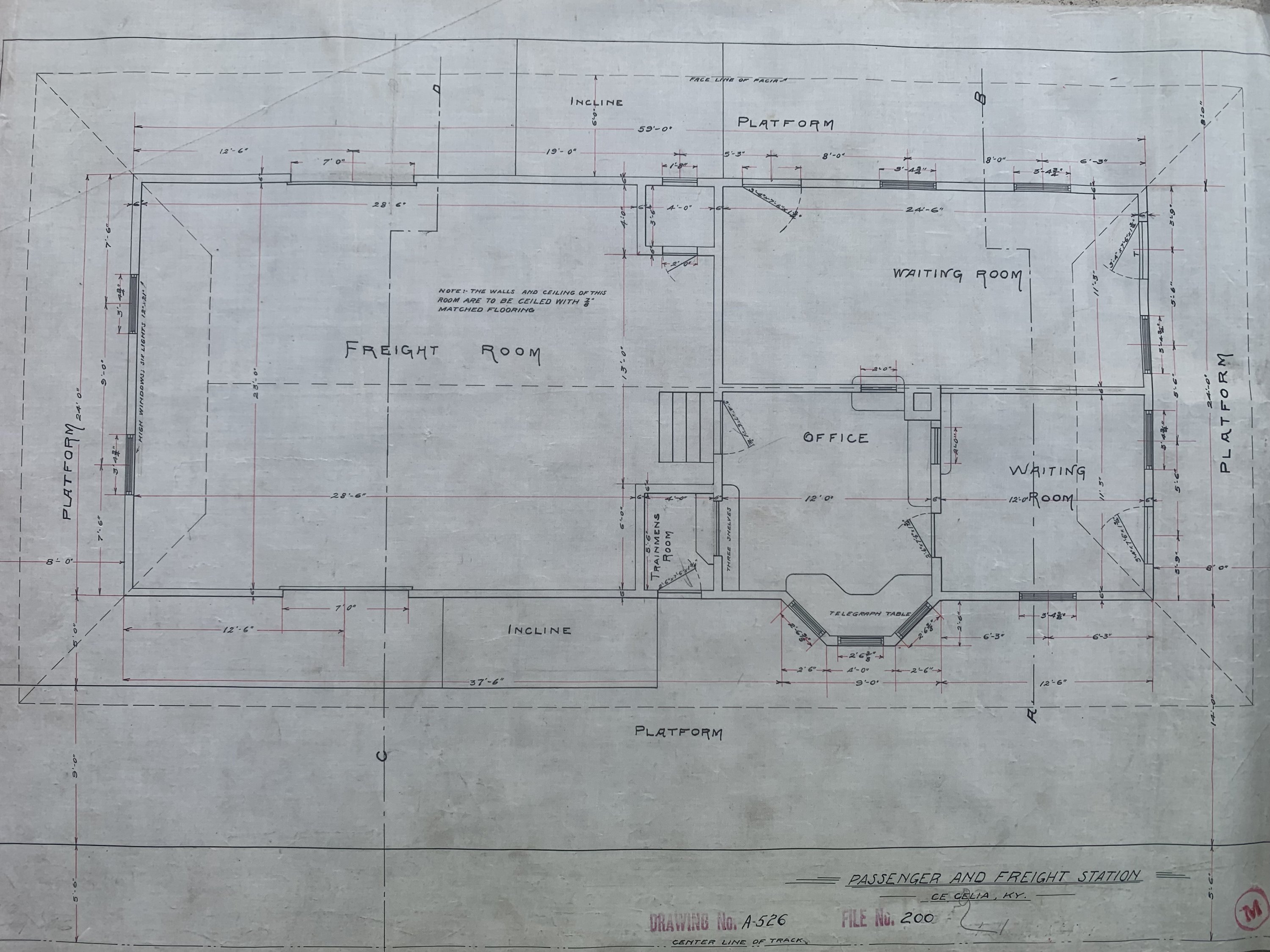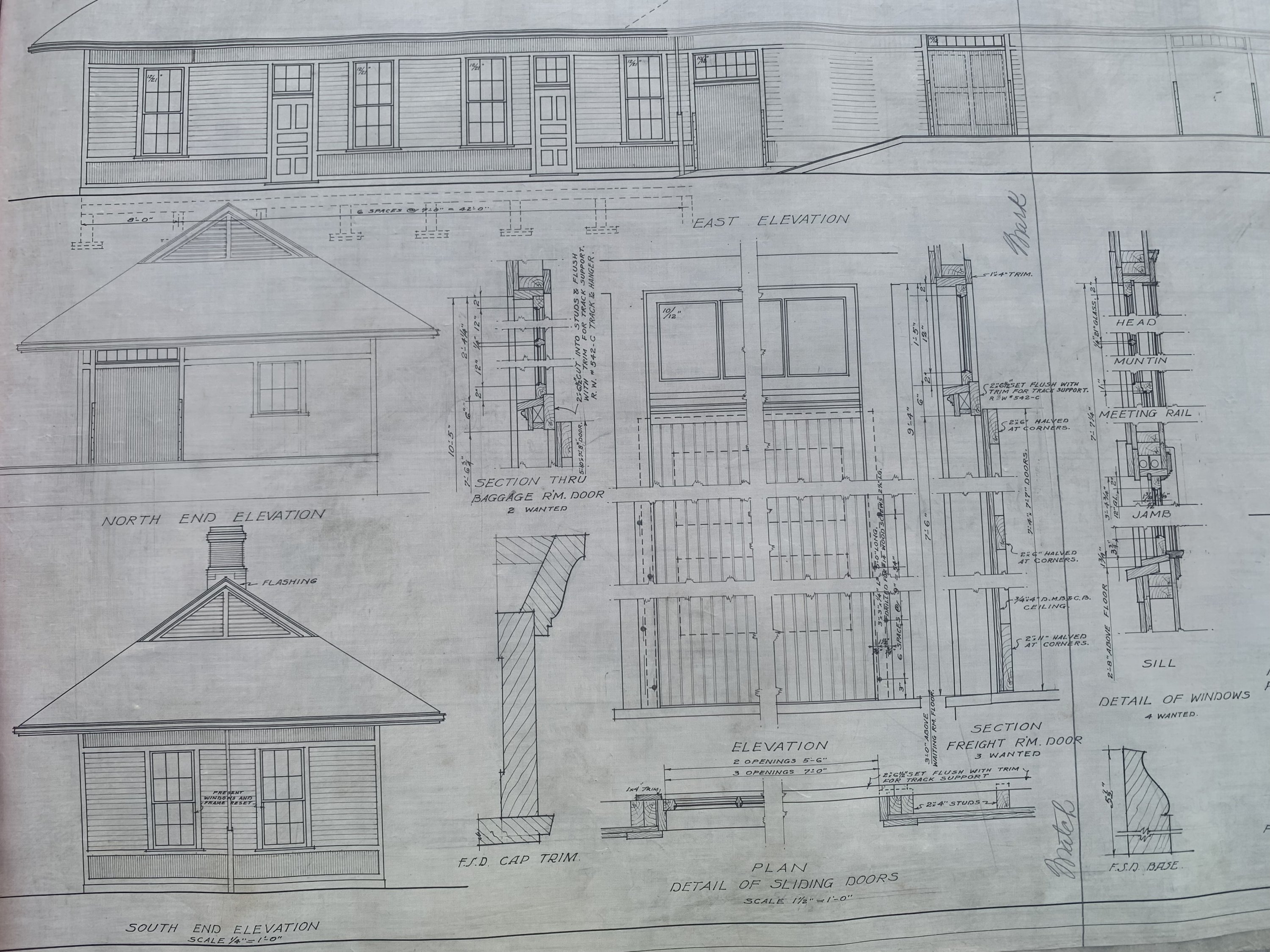 A lot of seven original architectural plans on vellum drafting sheets, prepared by the Illinois Central Railroad (I.C.R.R.) engineers of buildings between 1907 and 1918, covering passenger and freight depots in Cecilia, Kentucky; West Frankfort, Illinois; and Paducah, Kentucky. These plans offer a rare view into the design of Midwestern and Southern railroad architecture during the Jim Crow era.