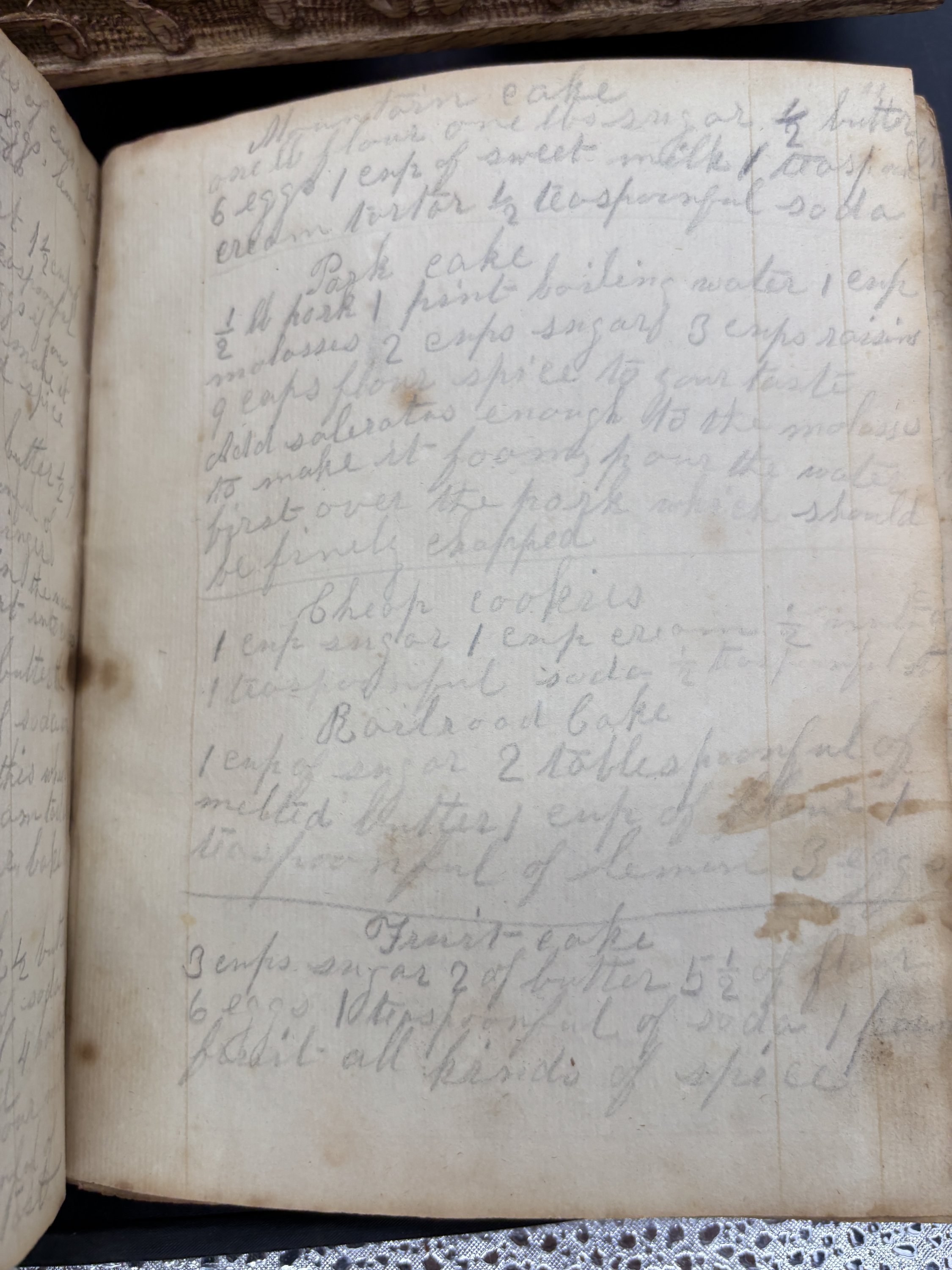 An interesting journal from the 1850s from a Virginia estate. It features 24 pages of poems and 10 pages of recipes with many recipes for pies and cakes. It is guaranteed original.