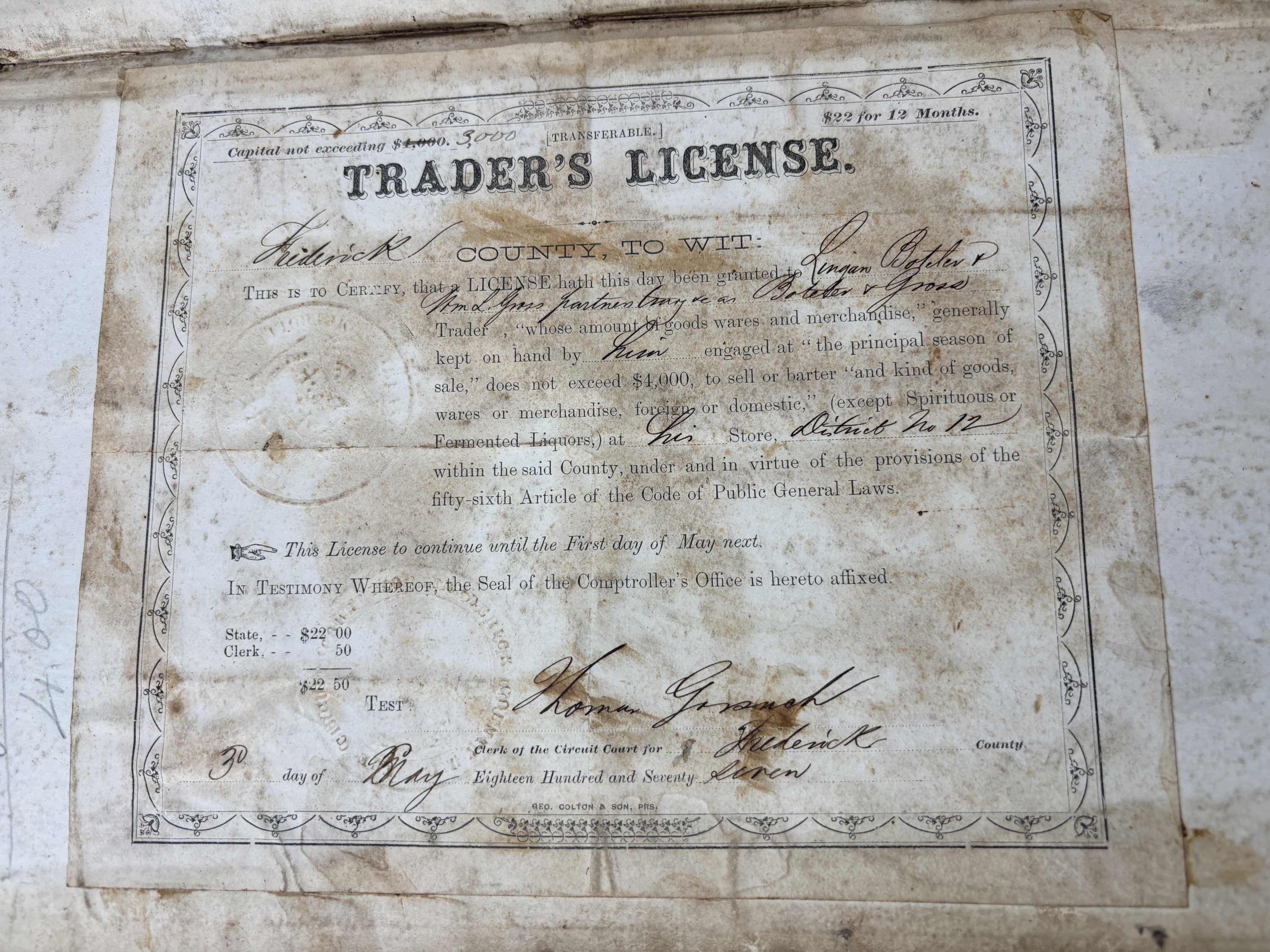 An interesting handwritten ledger from a general store from Frederick County, Maryland from the 1870s. It is nearly 400 pages long and includes several entries marked as "Colored" for African Americans.
