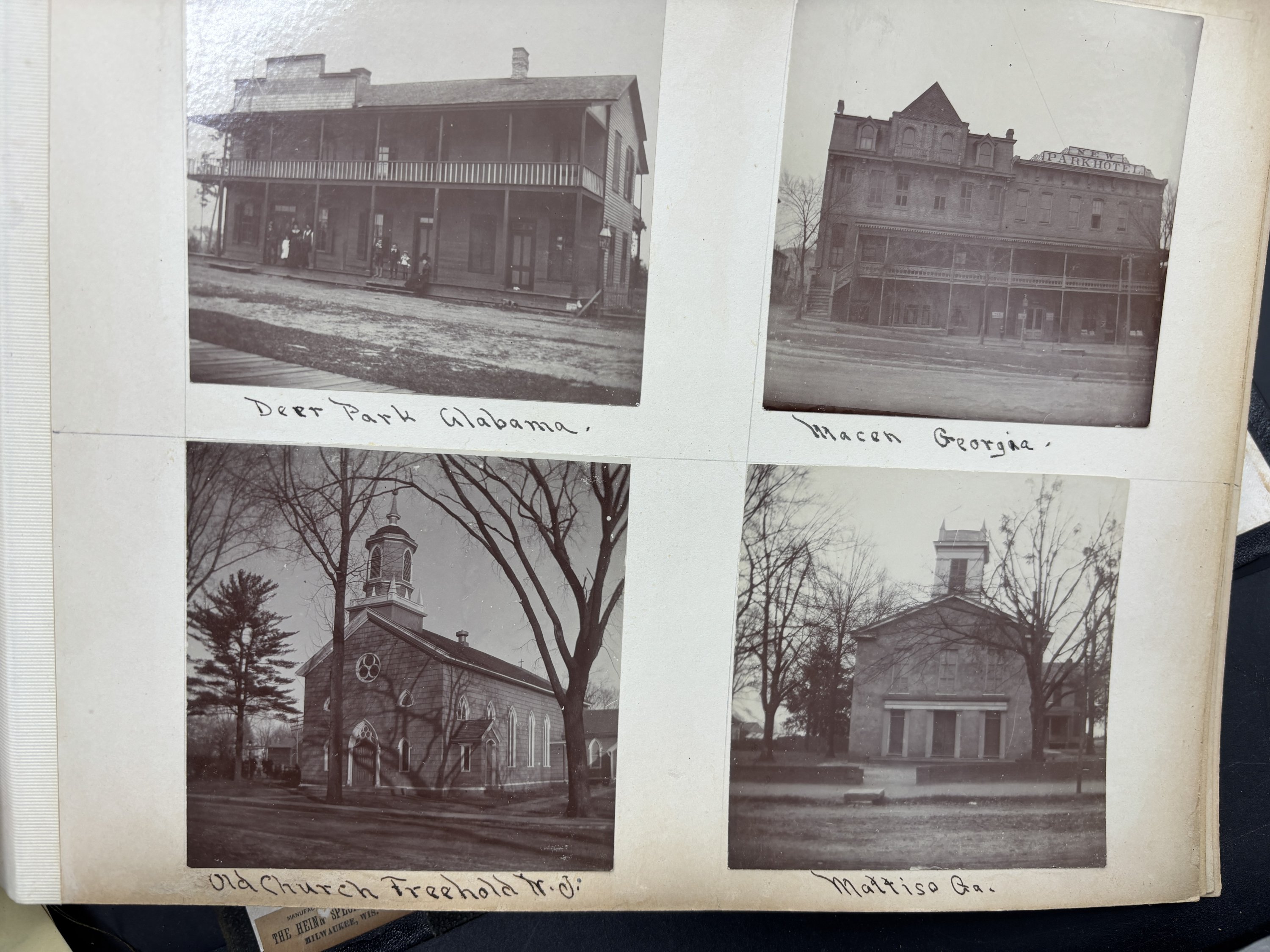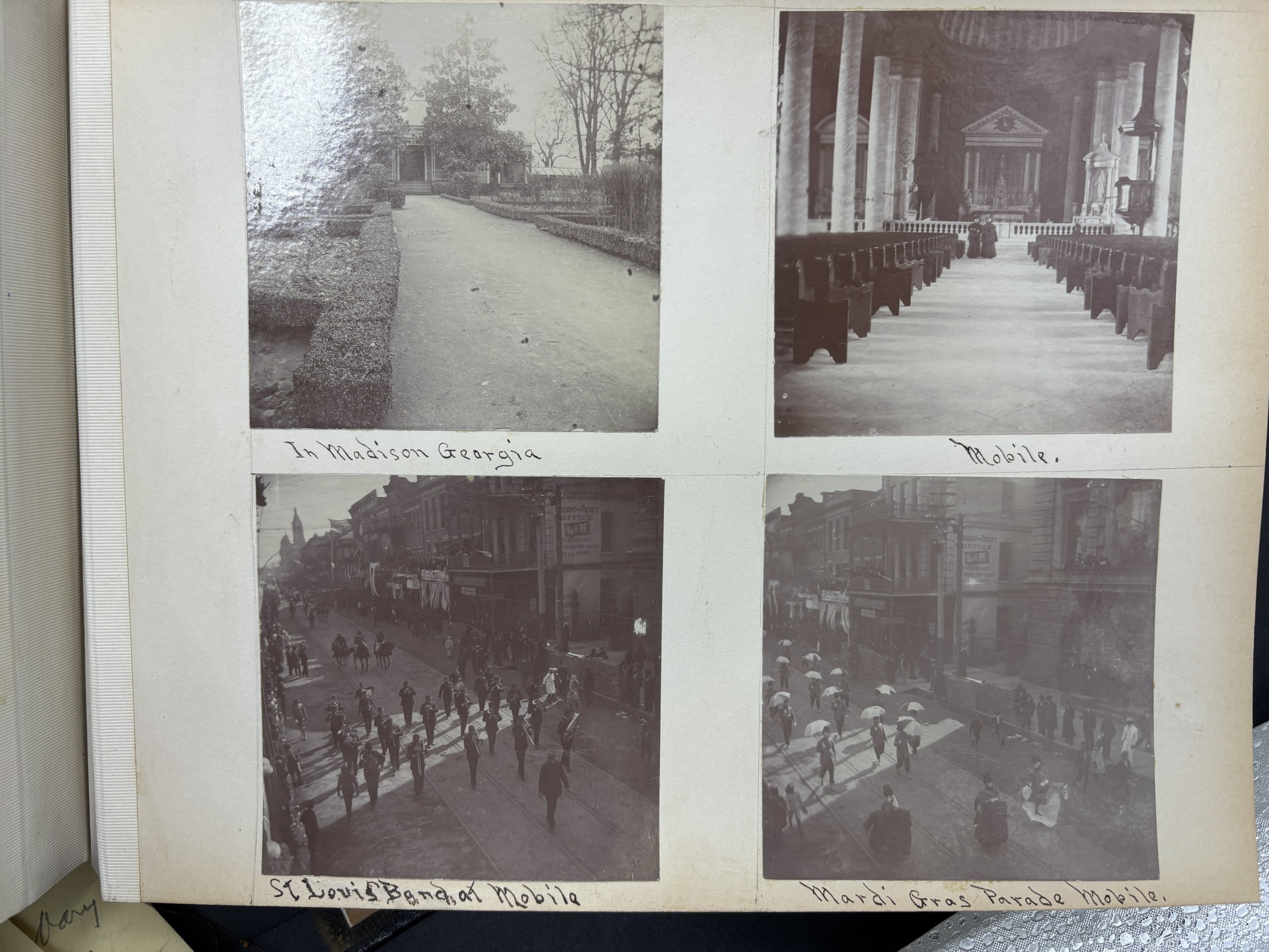 This is a wonderful large photo album from the 1890s with 116 albumen photographs of a trip across the United States c1893. The trip begins in Ohio and goes out west to Colorado and then south through Alabama, Georgia and others. There are many photographs focused on Colorado along with shots of a Mardi Gras parade, the Chicago World's Fair, a "Colored Excursion" in Ohio, and much more.