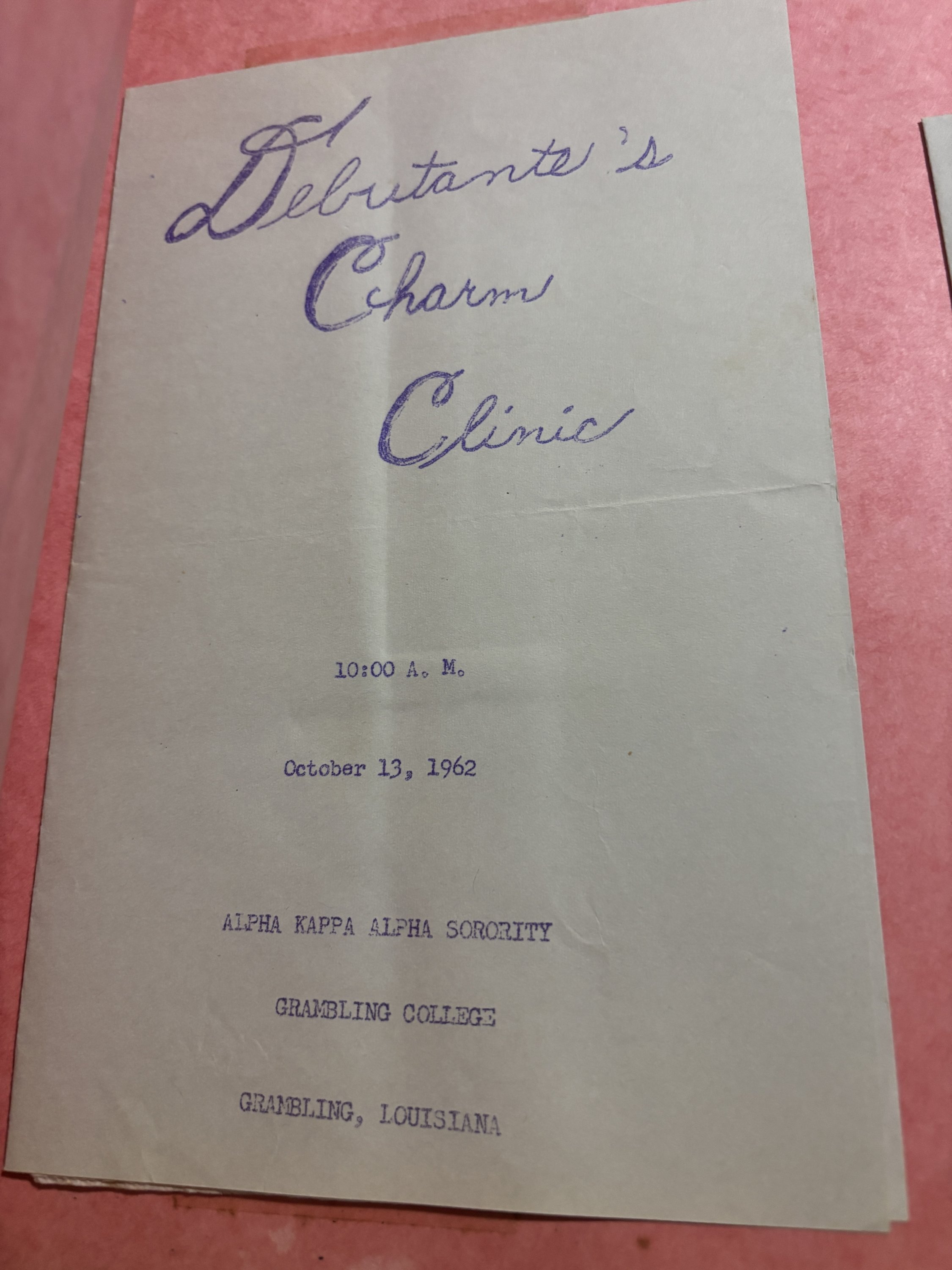 A wonderful scrapbook from 1962 for a member of the African-American Alpha Kappa Alpha fraternity at Grambling State University. The scrapbook includes over 50 items including programs, photographs, and other ephemera. It is guaranteed original.