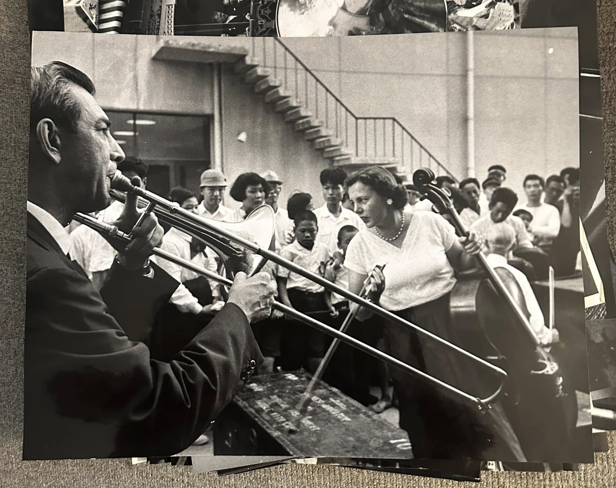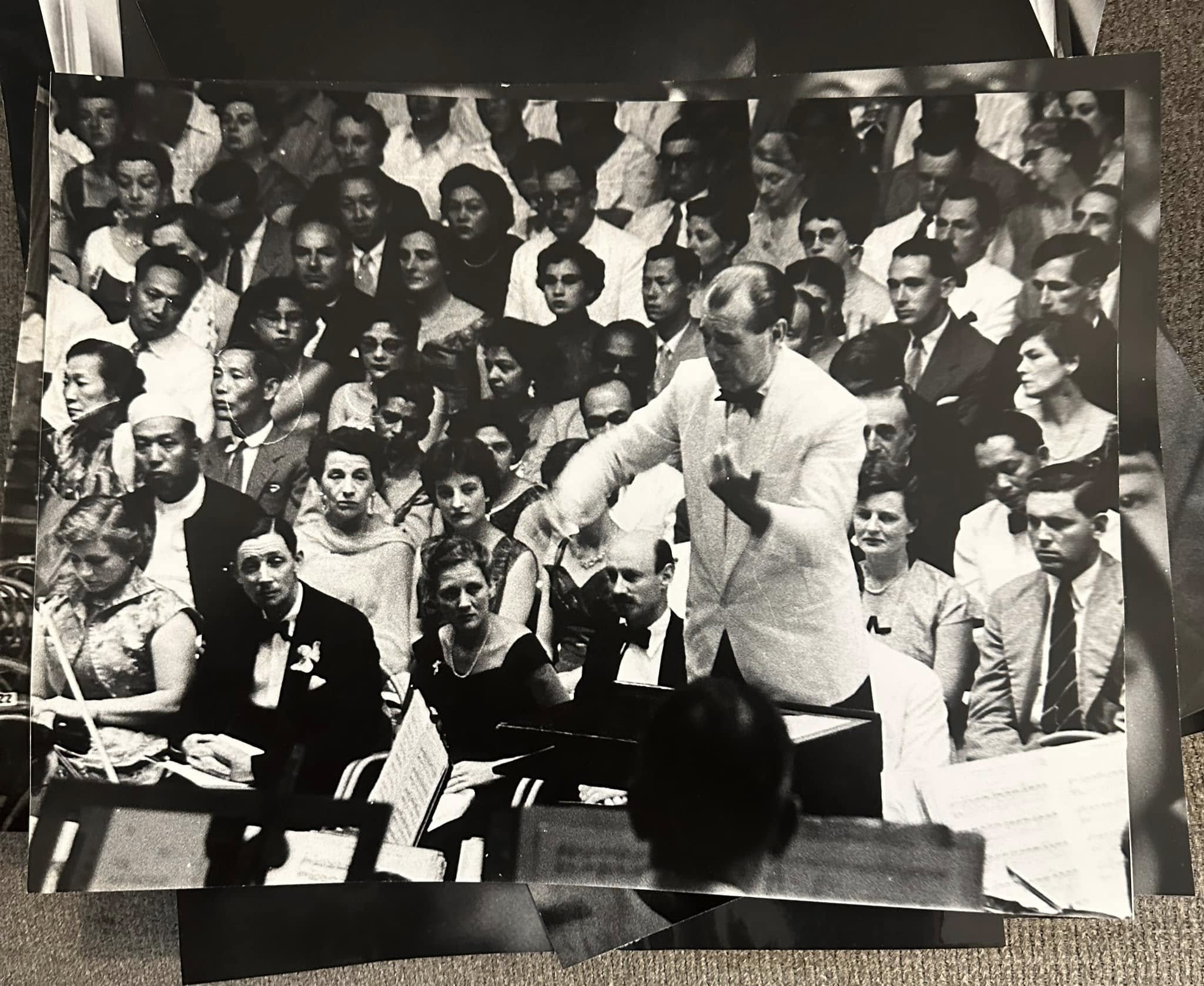 A wonderful collection of 52 photographs of the Los Angeles Philharmonic’s good-will tour of Asia in 1956. Most of the photographs are 13.5 x 10.5. Photos taken by well known photographer Leigh Wiener. From the estate of Alfred Wallenstein and feature many photographs that include Wallenstein, who was the director of the Philharmonic at this time.